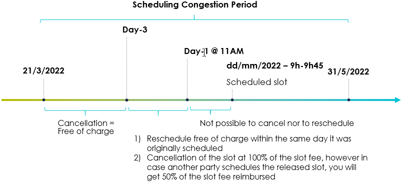 A Scheduling Congestion Period is therefore announced from 21st March to 31st May 2022 included.