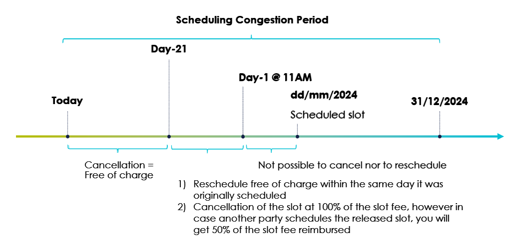 During this period your possibilities to reschedule a slot will be limited in the 21 days before the start of the slot.